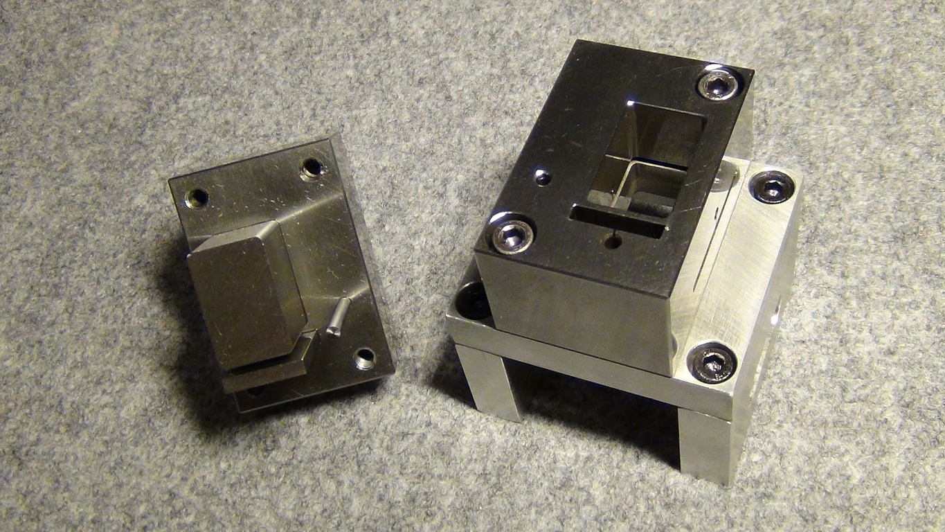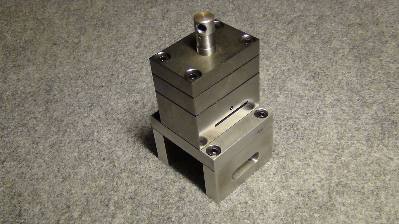 Jednoduchý nástroj na stříhání štítků ručním způsobem v kloubovém lise.
